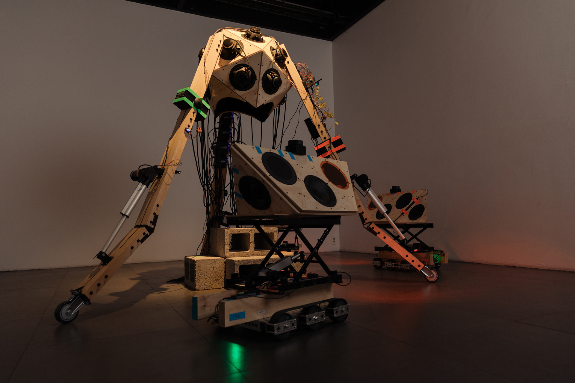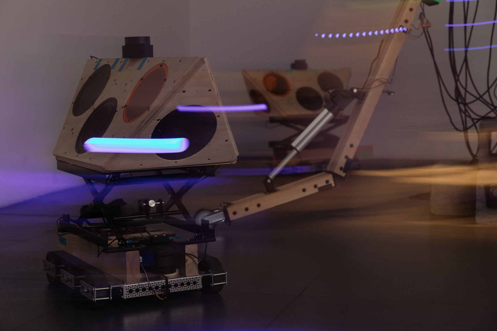 Presented in June 2025 at Centro Nacional de las Artes (CENART) in Mexico City as part of the Desobediencias Robóticas “encuentro,” DRM v2 and the three robots of the AGNS Collective investigated agency through movement, sound, and visual presence, inviting audiences to engage immersively with my robotic world.