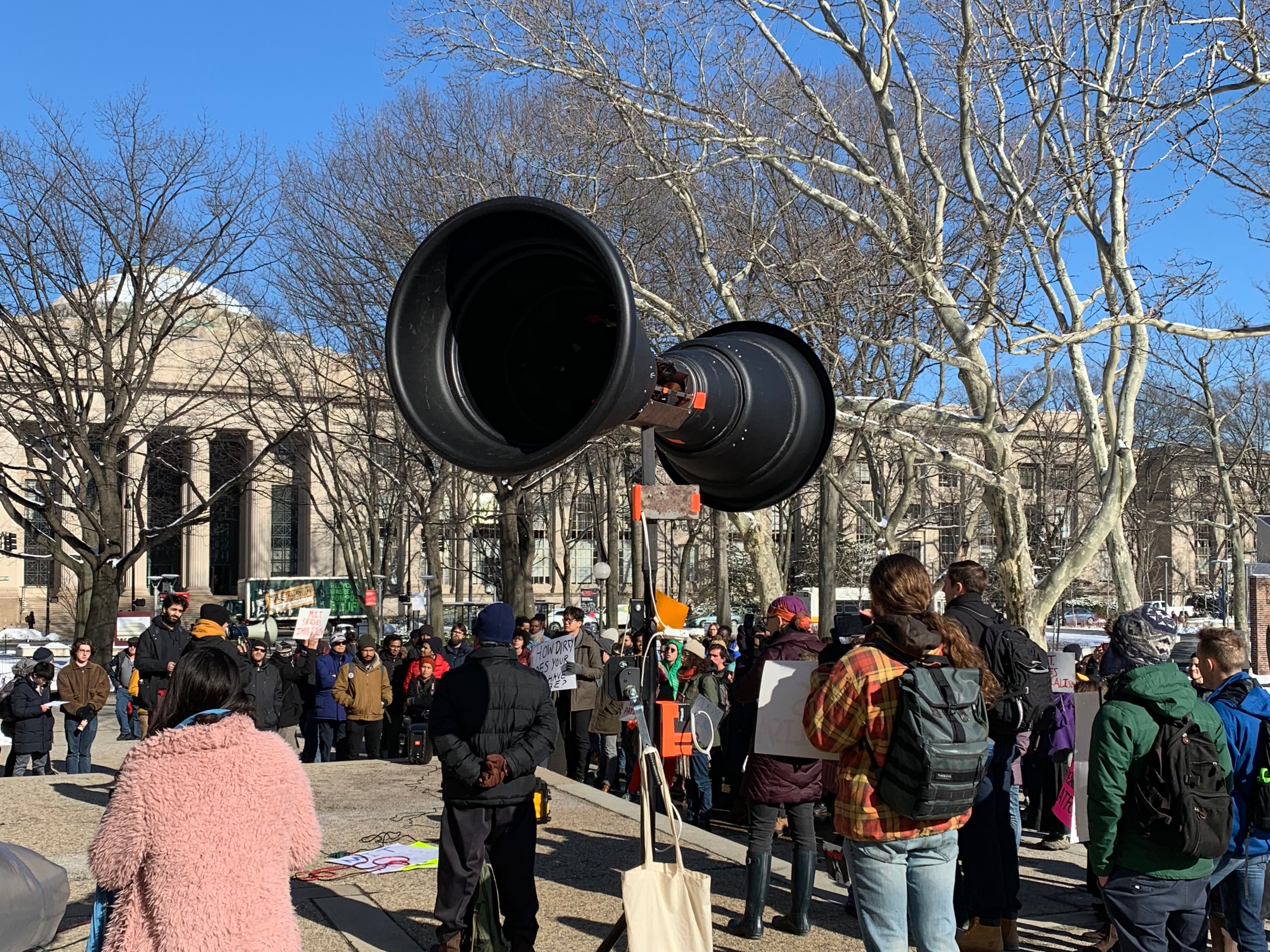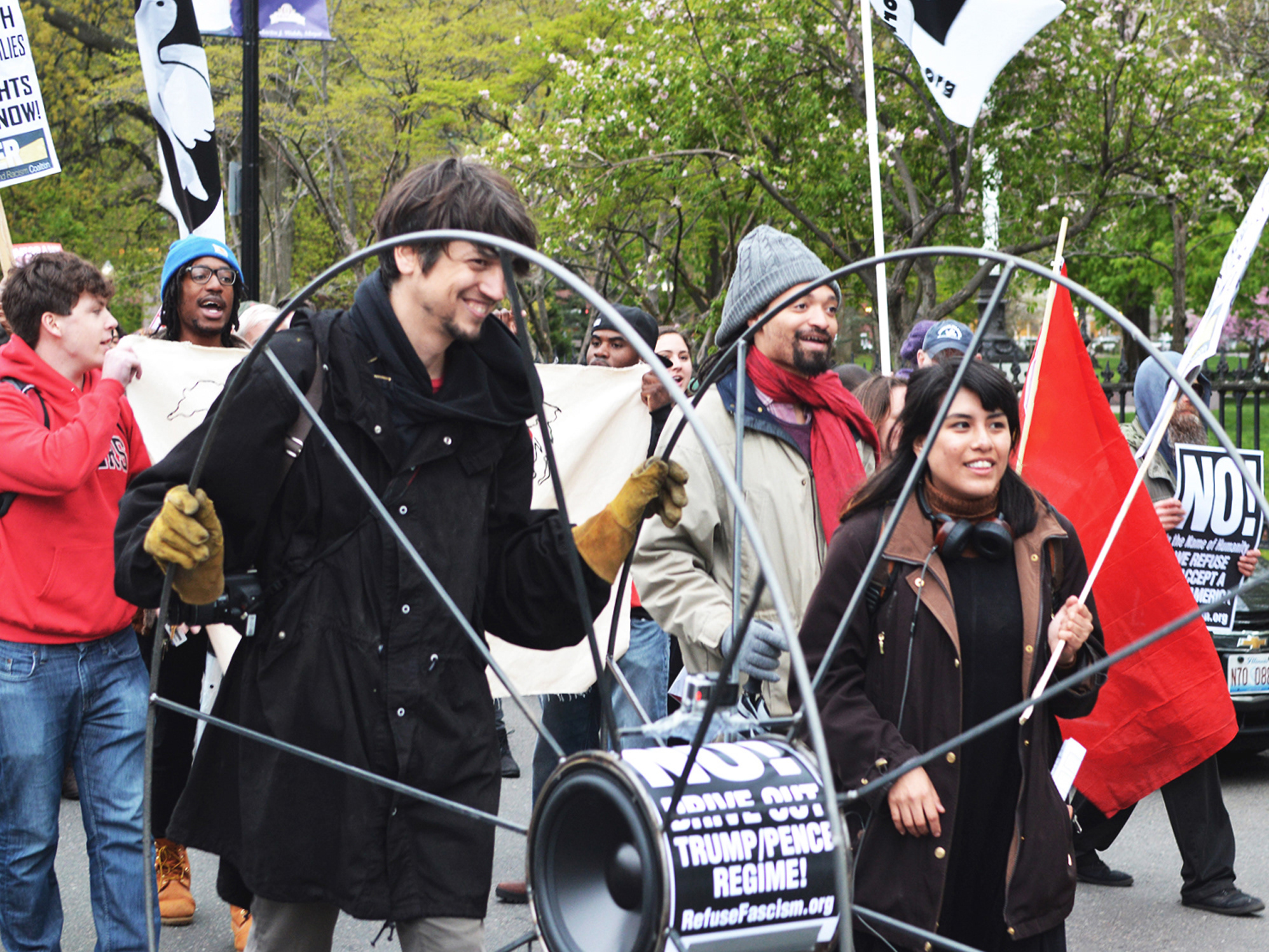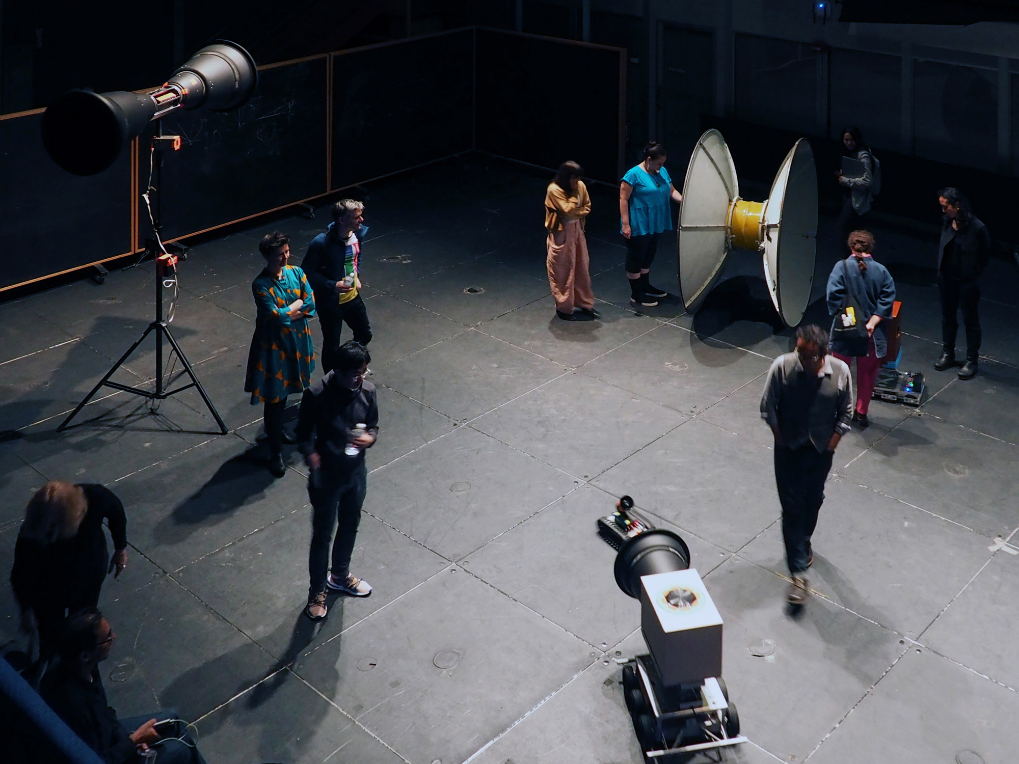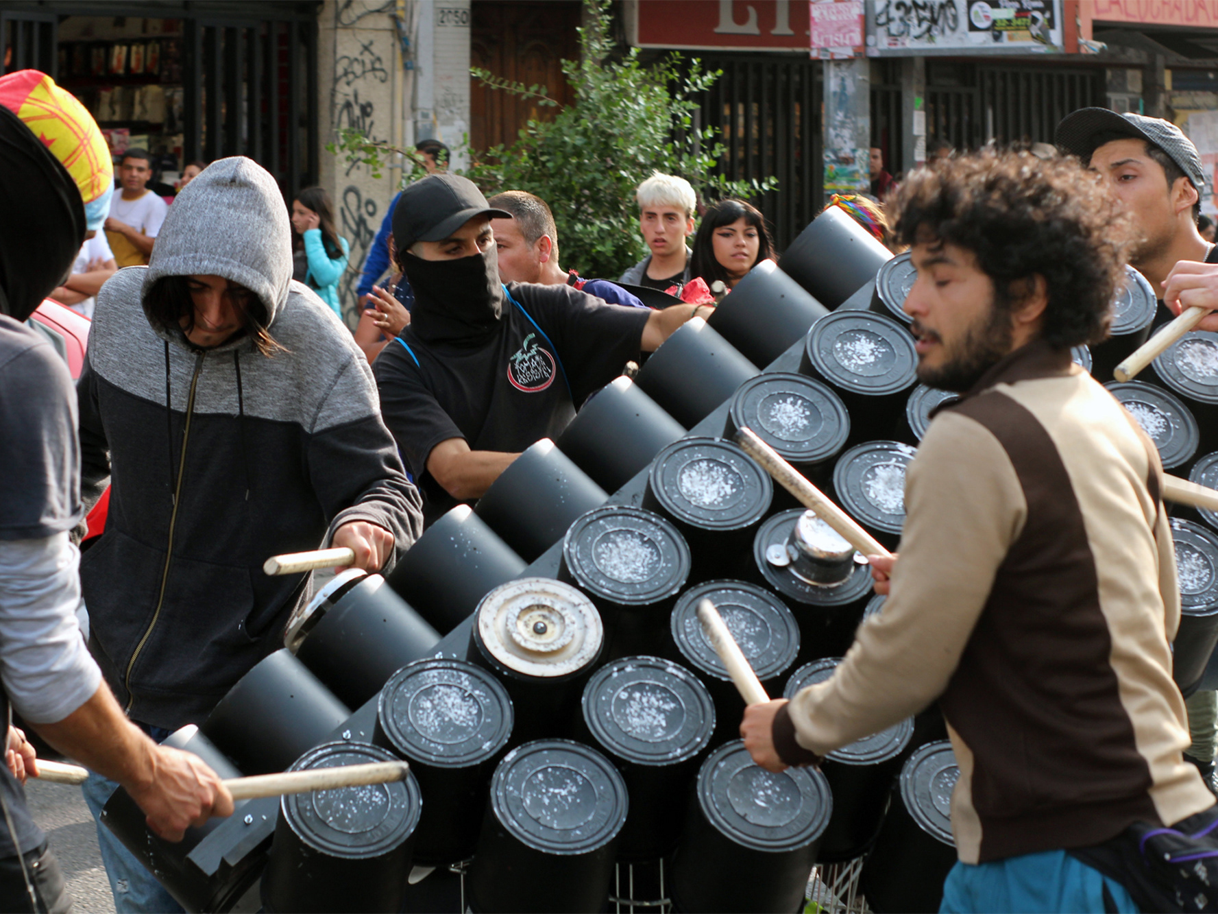 Performance. Machines: Speaker Wheel #2, Speaker Tower, Cajón Robot, Noise Robot, Megaphone Robot.